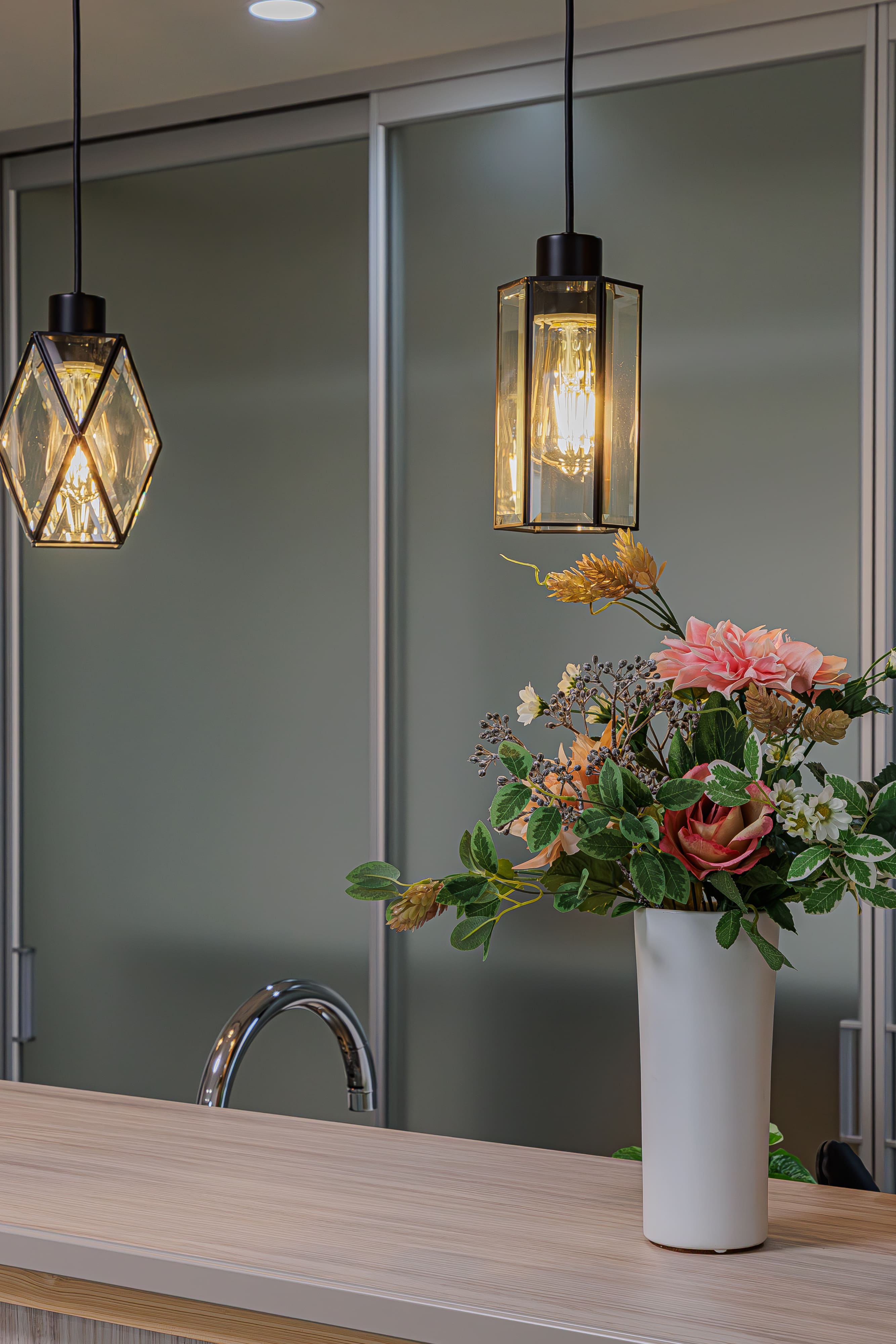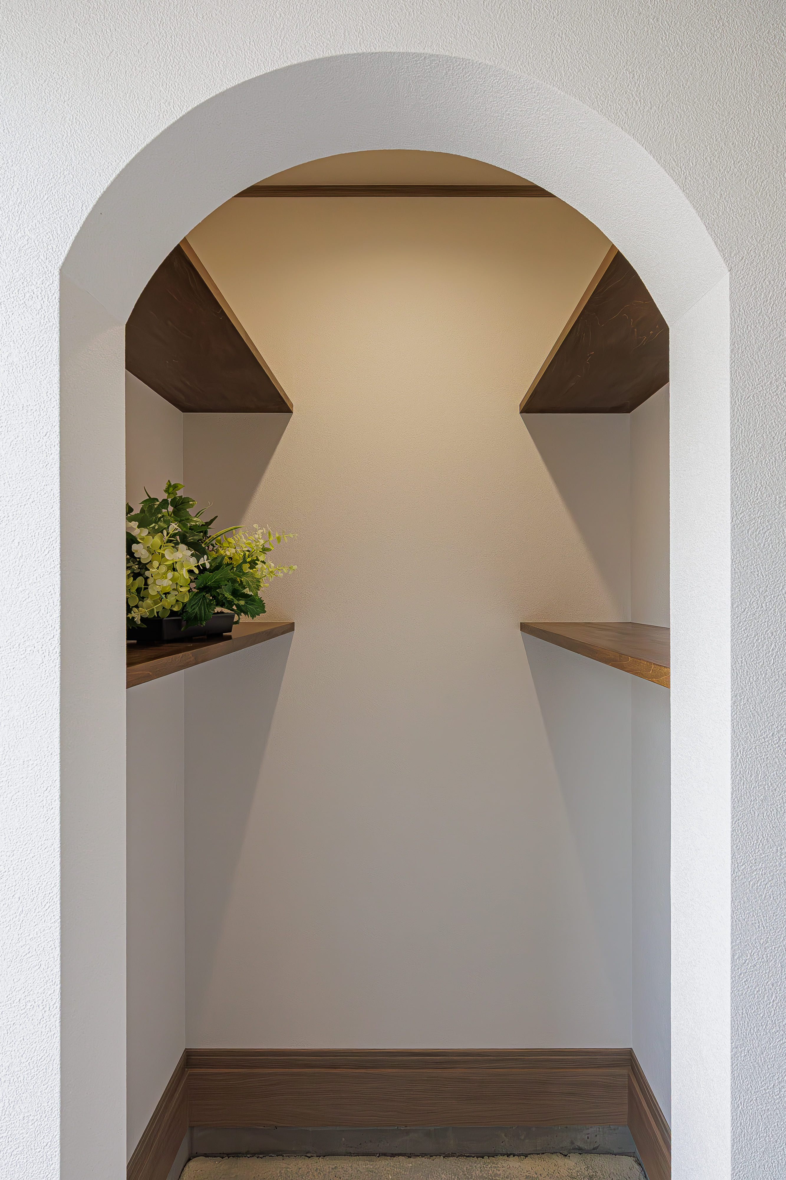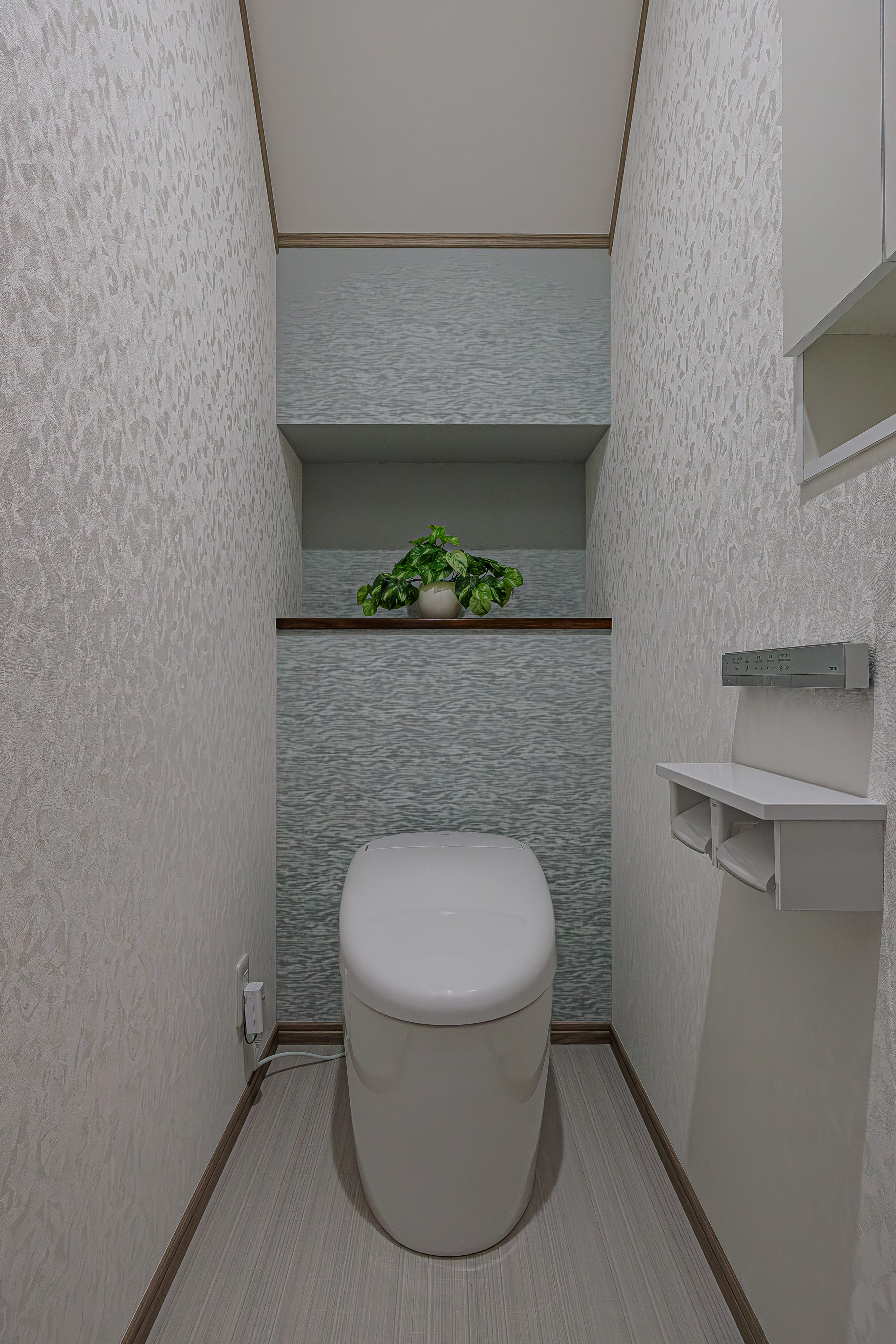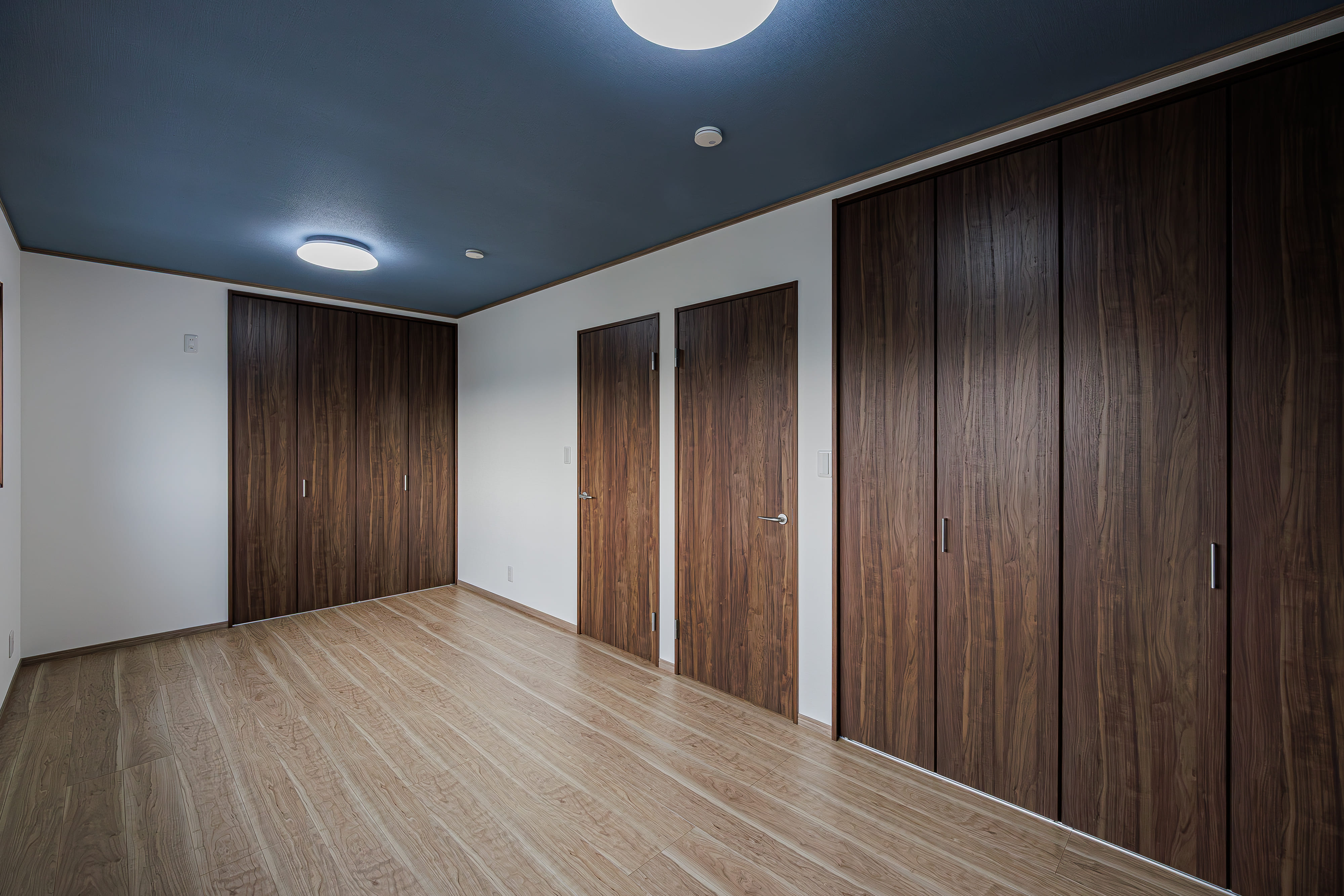 毎日の暮らしが心地よくなるよう、動線と収納にこだわったお住まいです。 リビングからそのまま寝室へつながる間取りで移動のしやすさを実現。 洗面スペースはキャビネットタイプを採用し見せる収納としてすっきりした印象に仕上げました。 キッチンは背面には扉を設けることで、冷蔵庫やカップボード、家電類を隠せる工夫を。急な来客時でも生活感を見せず、すっきりした空間を保てます。 飽きのこないシンプルさと、使いやすさを大切にした住まいです。