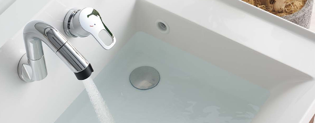 「すべり台ボウル」は水が排水口にまっしぐらに流れる設計になっており泡や髪の毛を押し流します。また洗面ボウルはスクエア形状のひろびろ設計でかさばる衣類もしっかり洗えます。